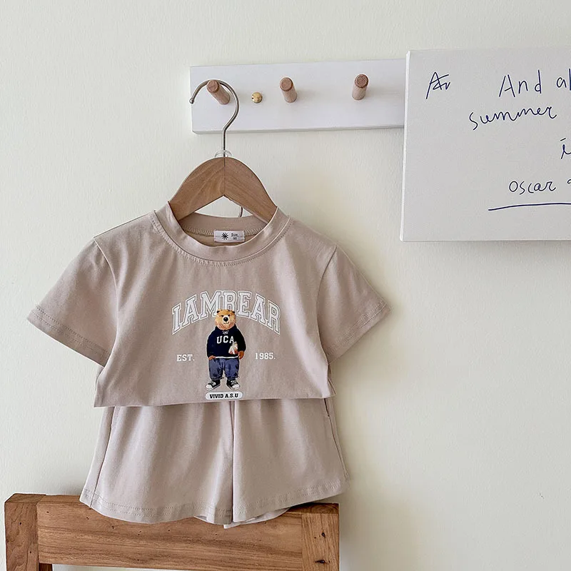 2025 Summer Kids’ Solid Color Sports Suit – Casual Two-Piece T-Shirt & Shorts Set for Babies