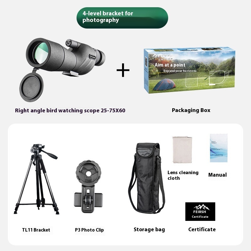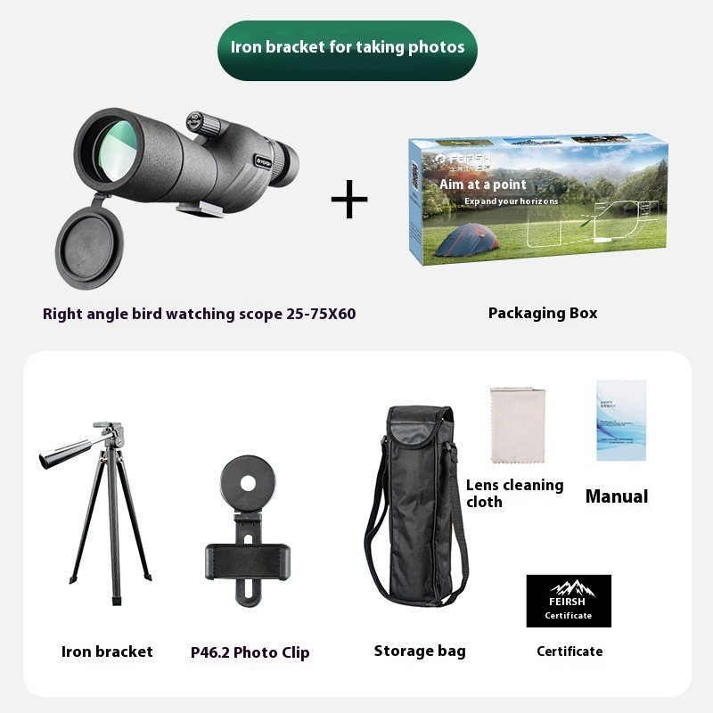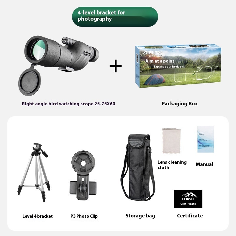 25-75×60 Zoom Monocular Telescope HD High Power Large Diameter Spotting Scope
