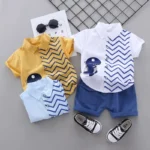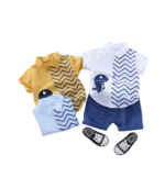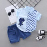 2Pcs Baby Boy Summer Outfit – Dinosaur Shirt & Shorts Set