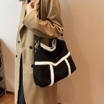 2pcs Women Plush Totes Casual Large-capacity Suede Handbag Winter Bags