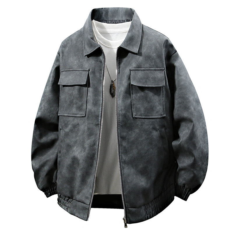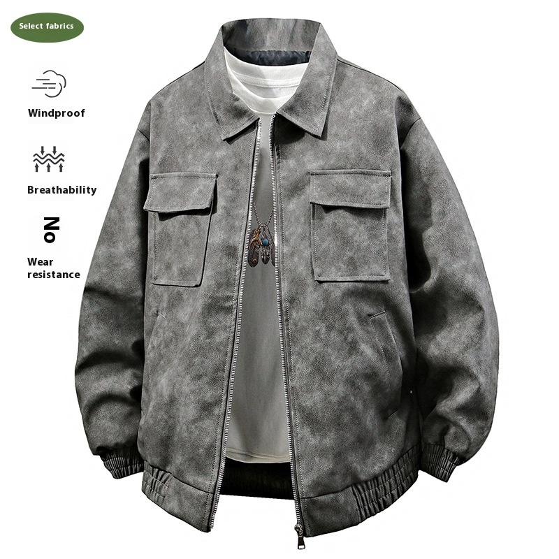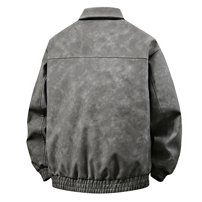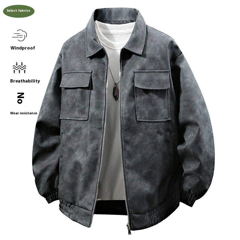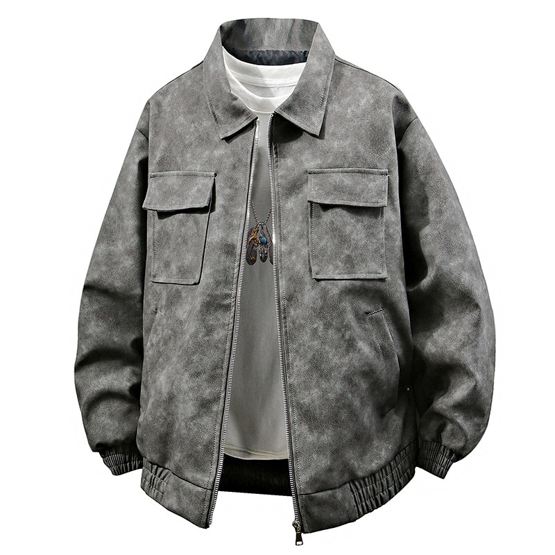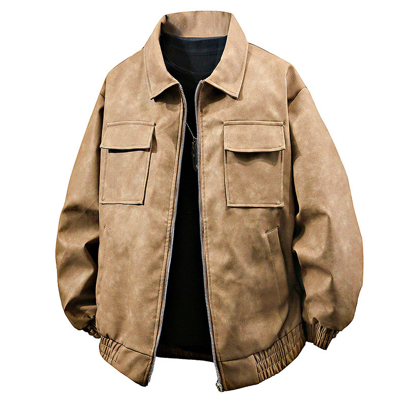 3D Stereo American Retro Hip Hop PU Leather Polo Collar Jacket