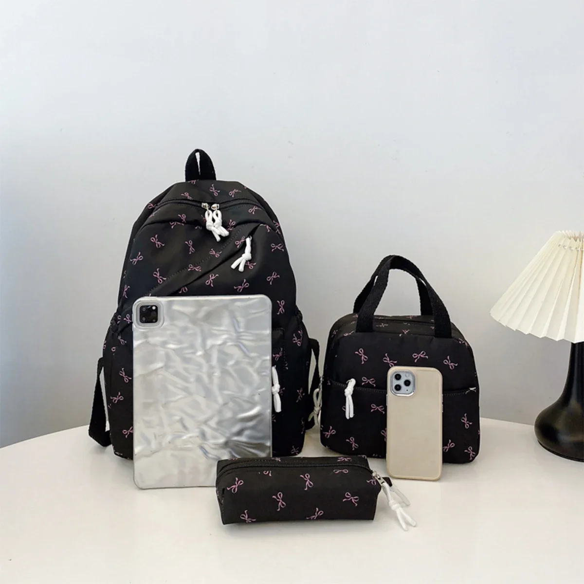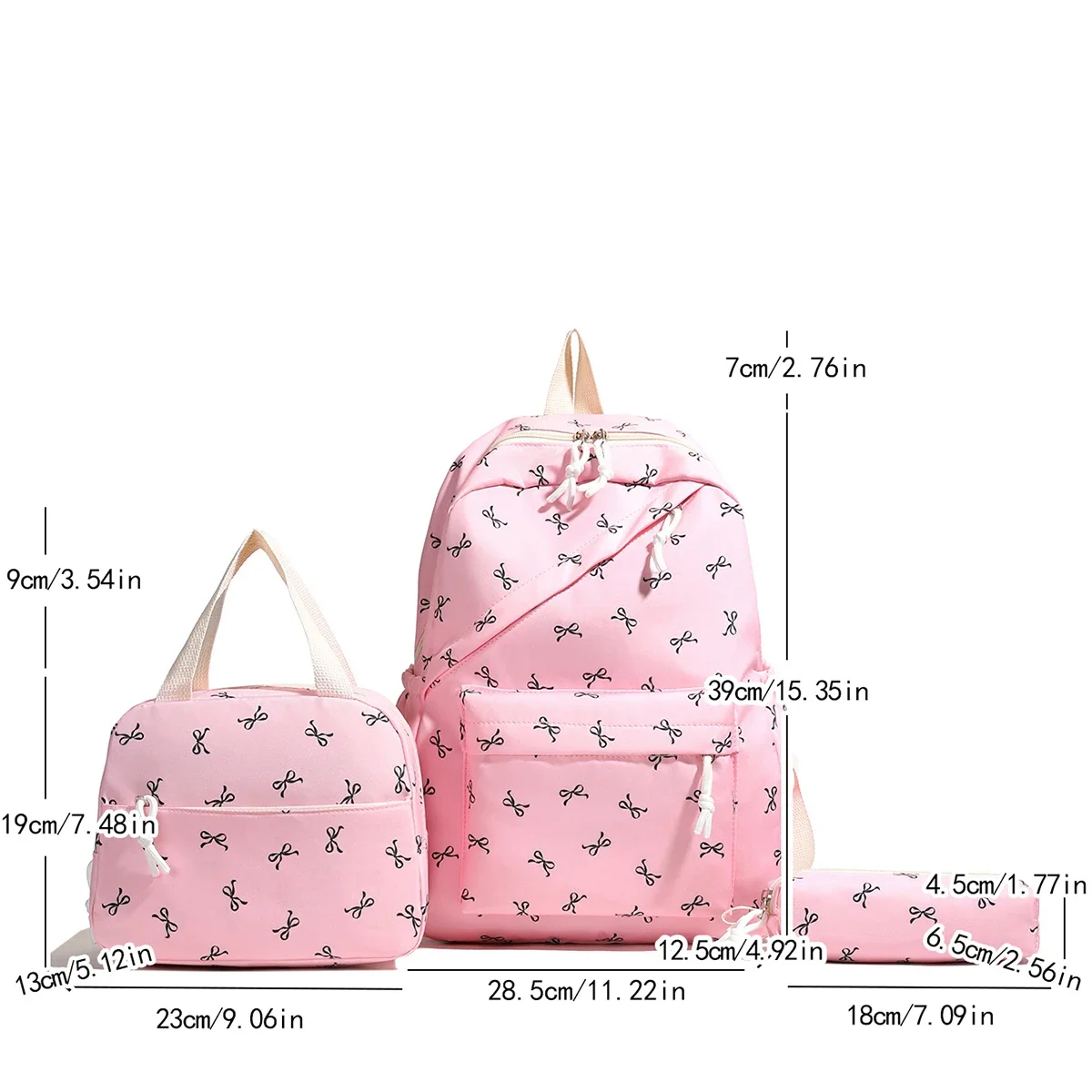 3PCS Women’s Backpack Set – Chic Bow Handbag & Pencil Bag with Contrast Stitching