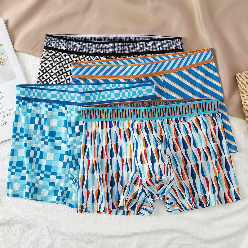 4/5piece Men’s Colorful Patterned Fashionable Casual Boxer Shorts Loose And Comfortable Oversized Underwear Elastic Waist Shorts