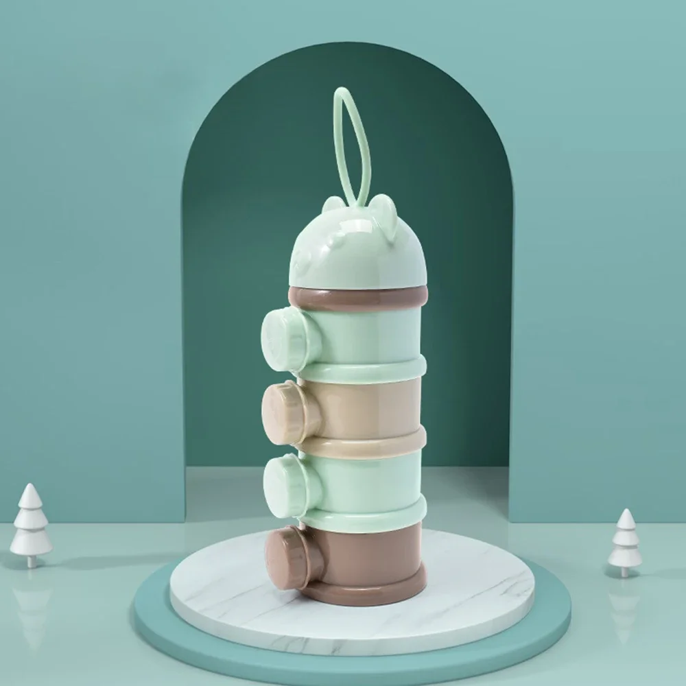 4-Layer Bear Milk Powder Box – Portable Baby Food & Snack Storage Container