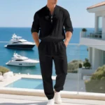 American loose linen set for men autumn Hawaiian home commuter thin Henry shirt long sleeve pants set