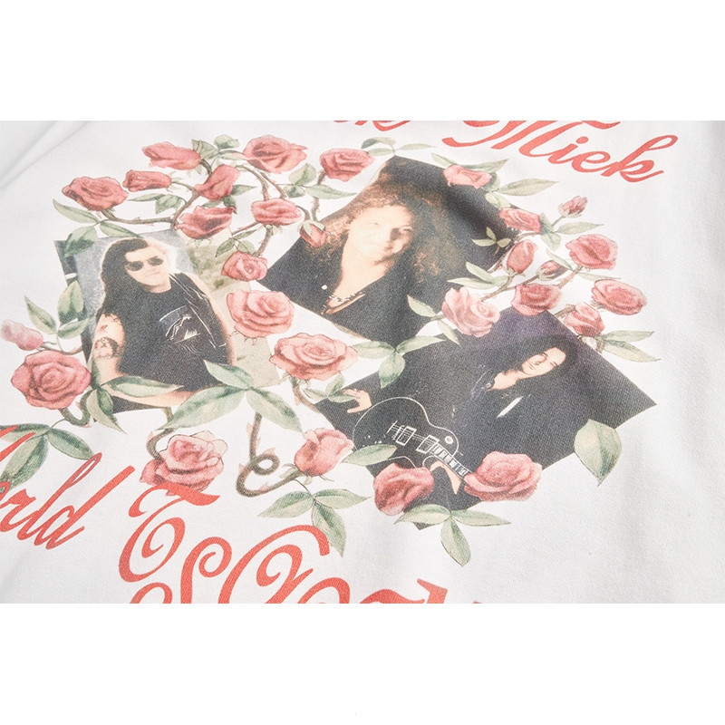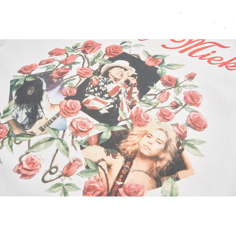 American Retro Hip Hop Rose Embroidered Short Sleeve T-Shirt
