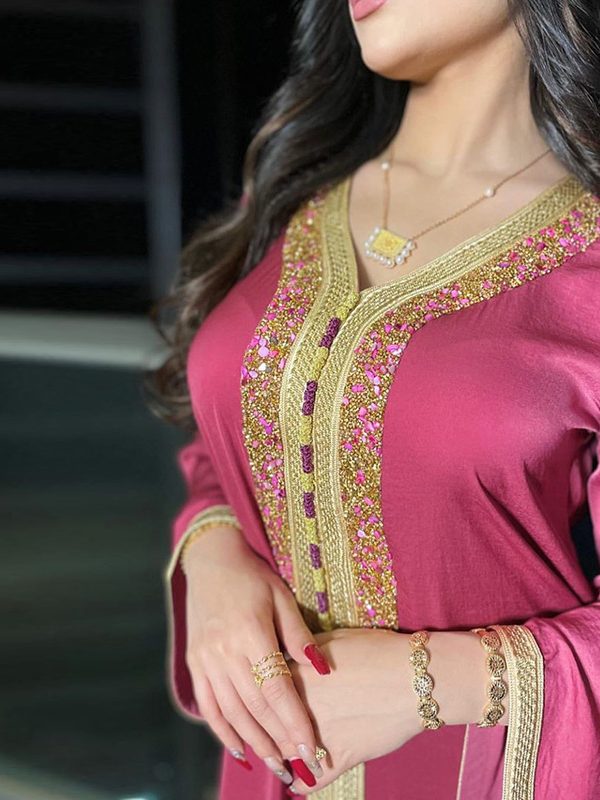 Autumn Muslim New Middle East Dubai Arab Abaya Embroidery Set Female Side