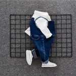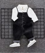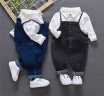 Baby autumn set 1 a 3 year old baby boom fall clothes Denim Bib two piece set of infants and young children.