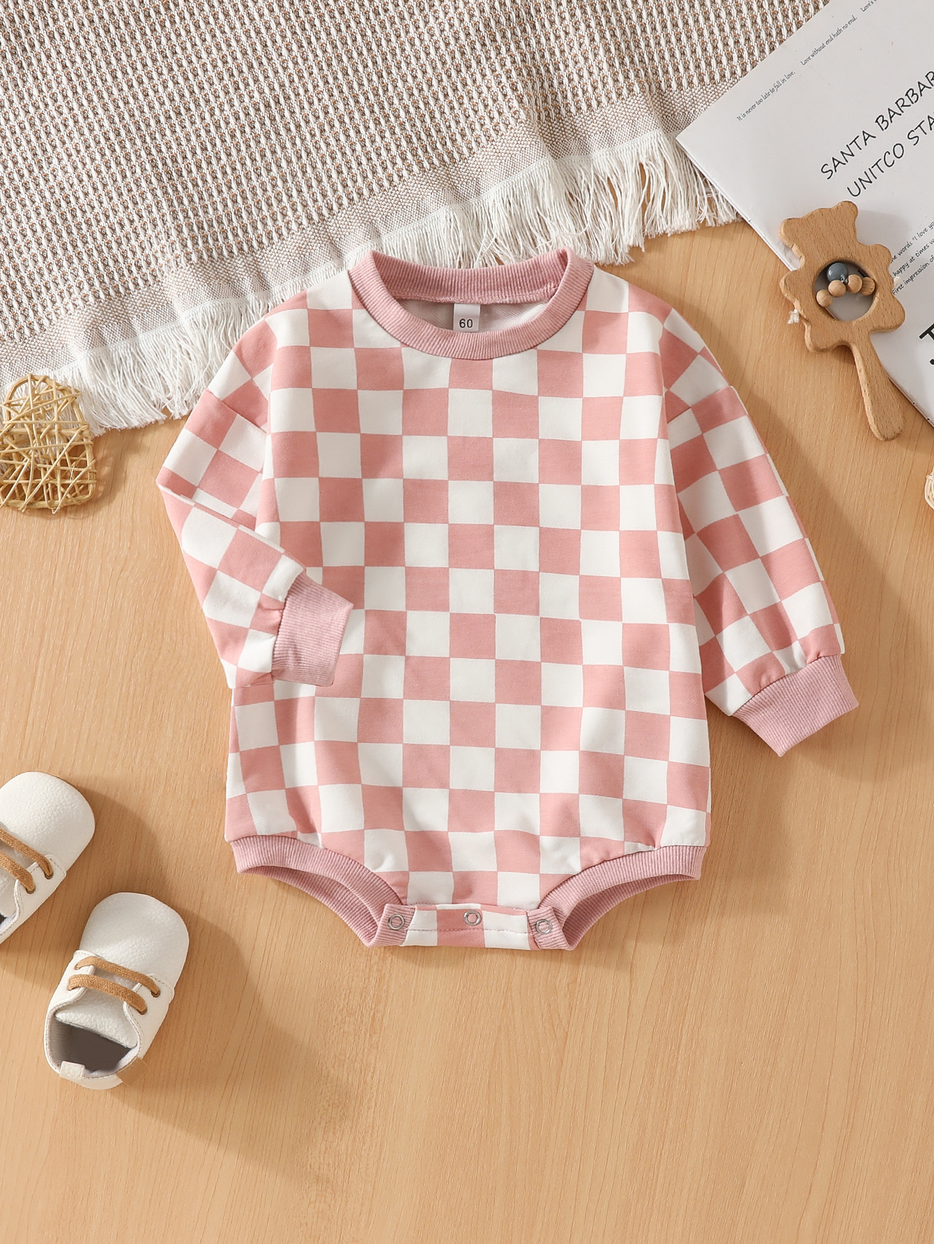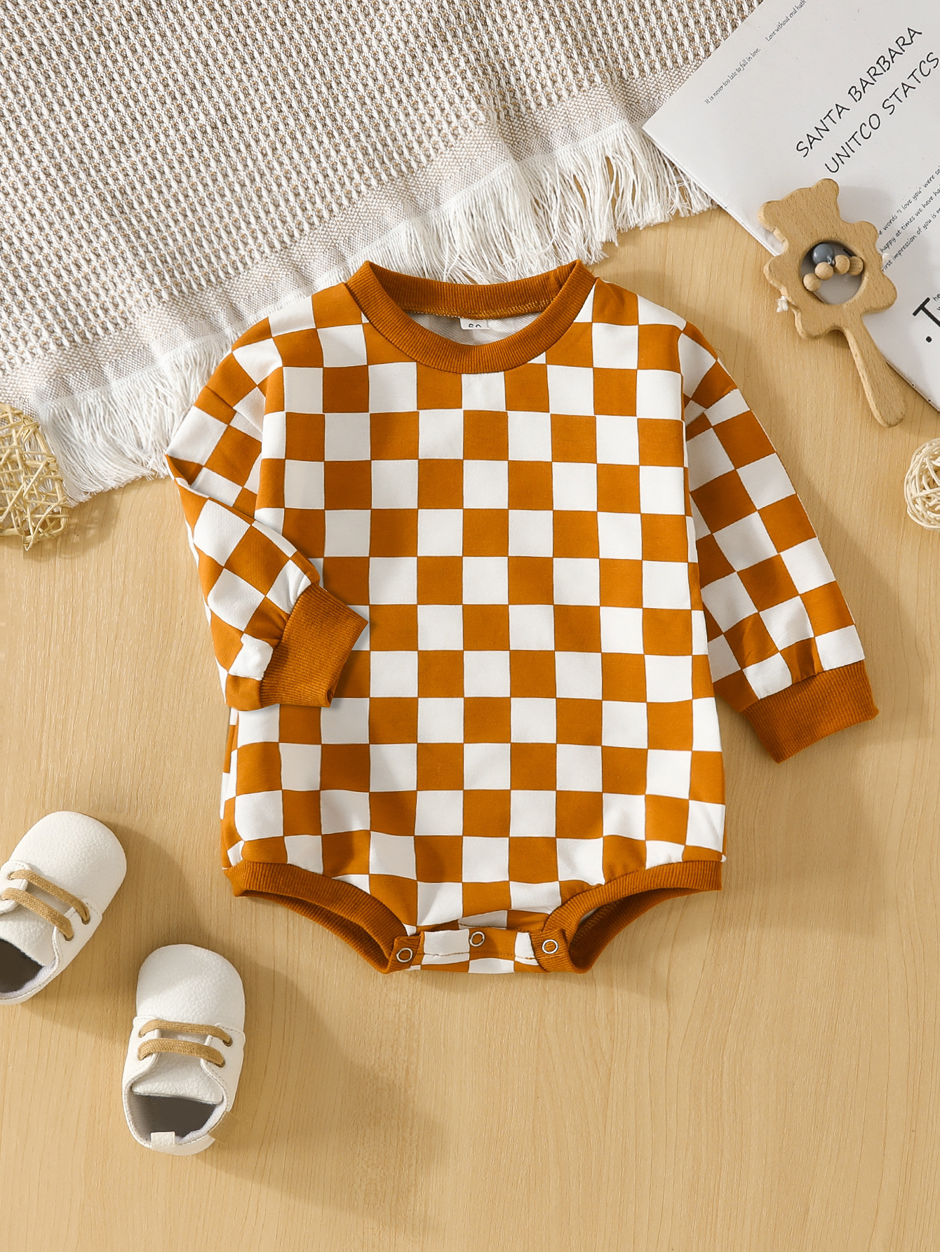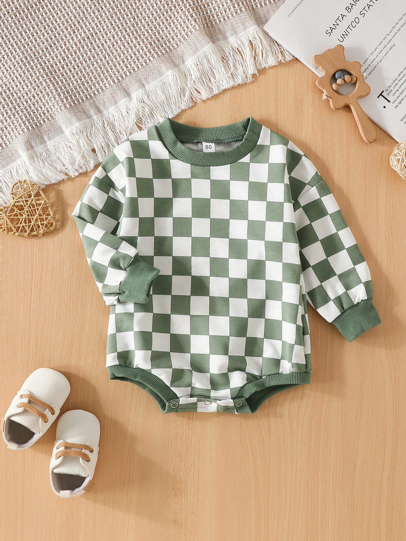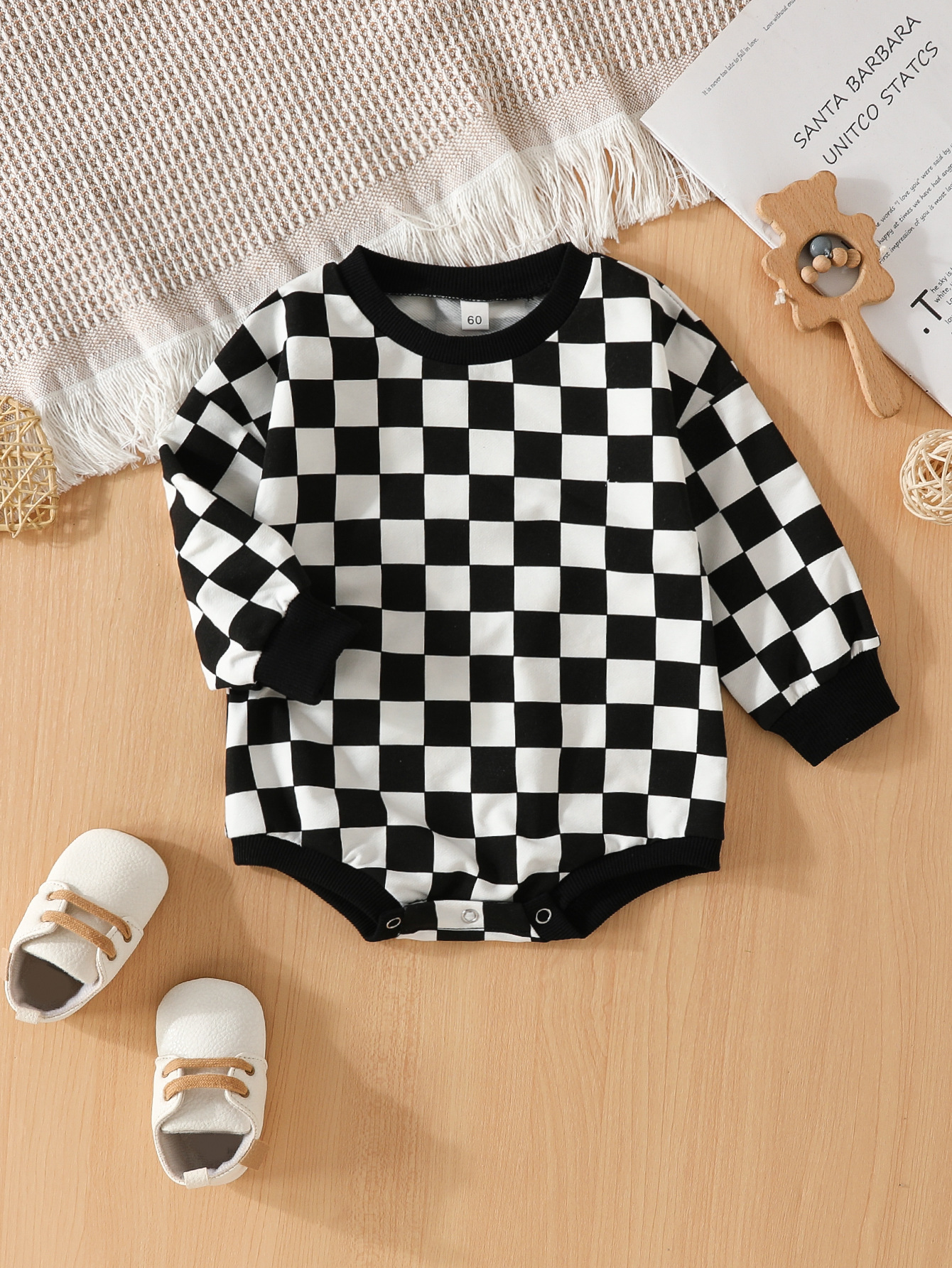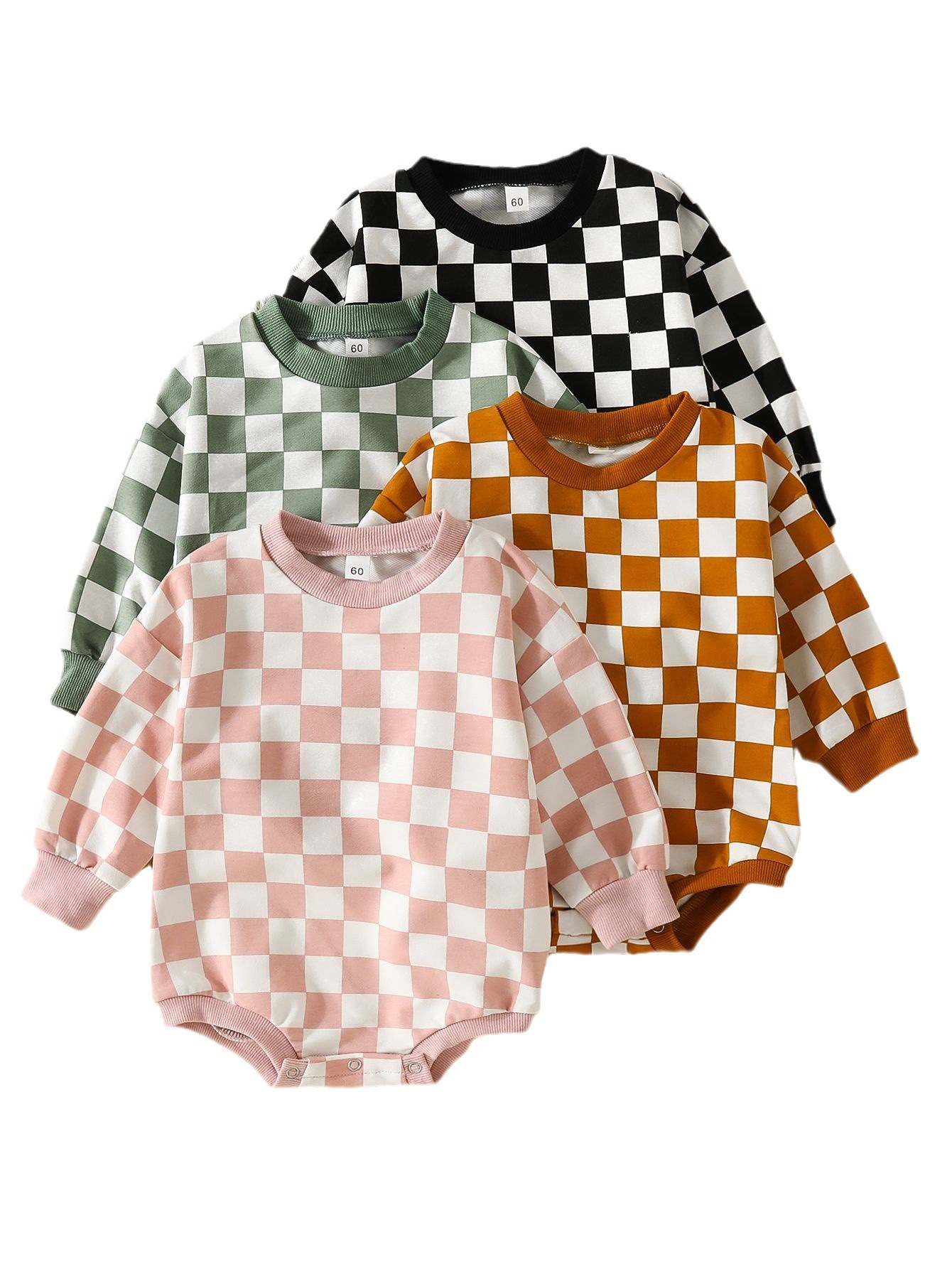Baby Clothes Jumpsuit Triangle Chessboard Plaid Pullover Sweater