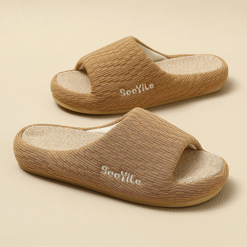 BASATU Men’s Linen Slippers Breathable Open-Toe Non-Slip House Shoes Home Slippers Soft Sole Silent Shoes Cotton Linen Slippers