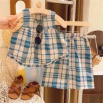 Bear Leader Girls’ Summer Outfit – Blue Plaid Vest & Pants 2-Piece Set for Ages 2–7