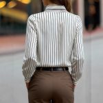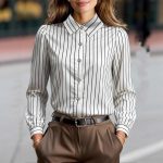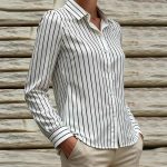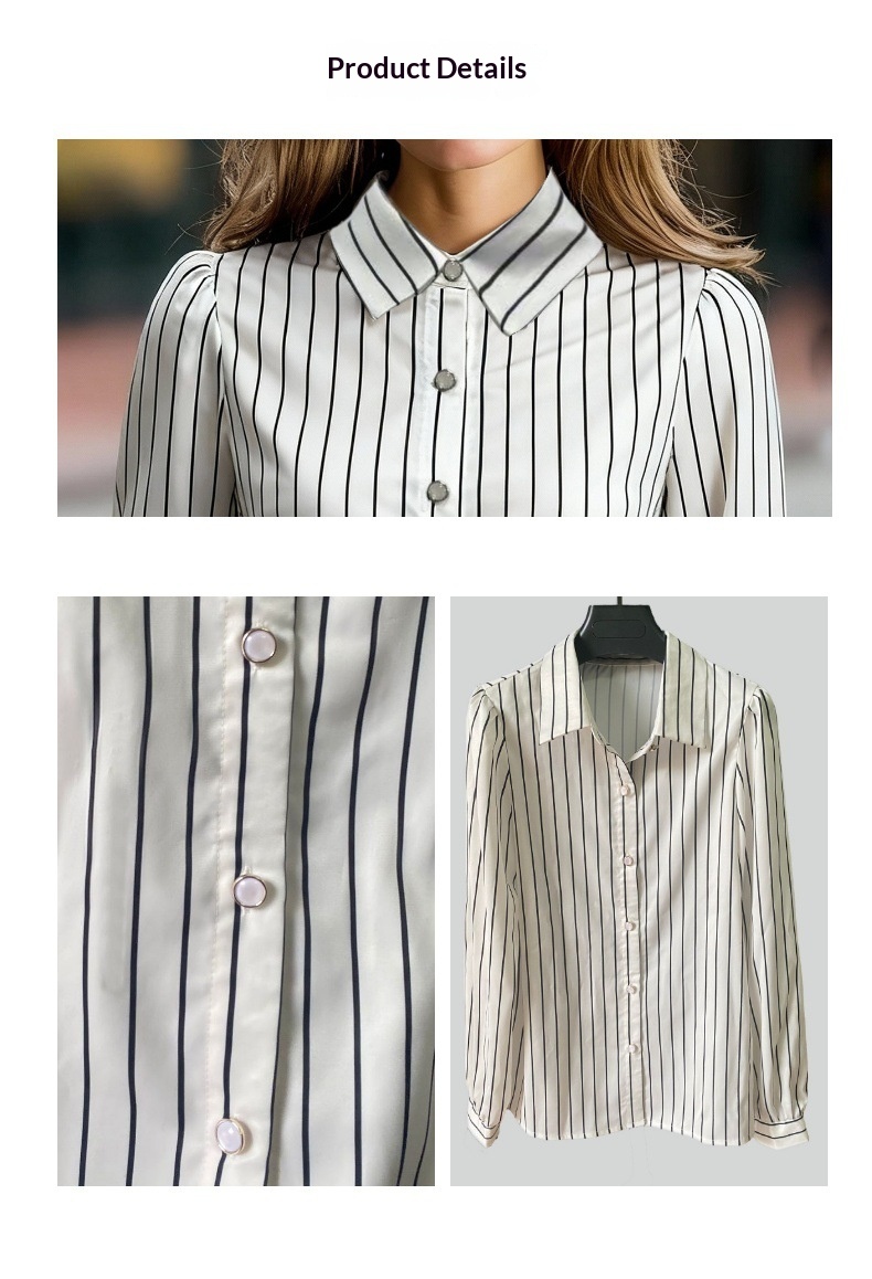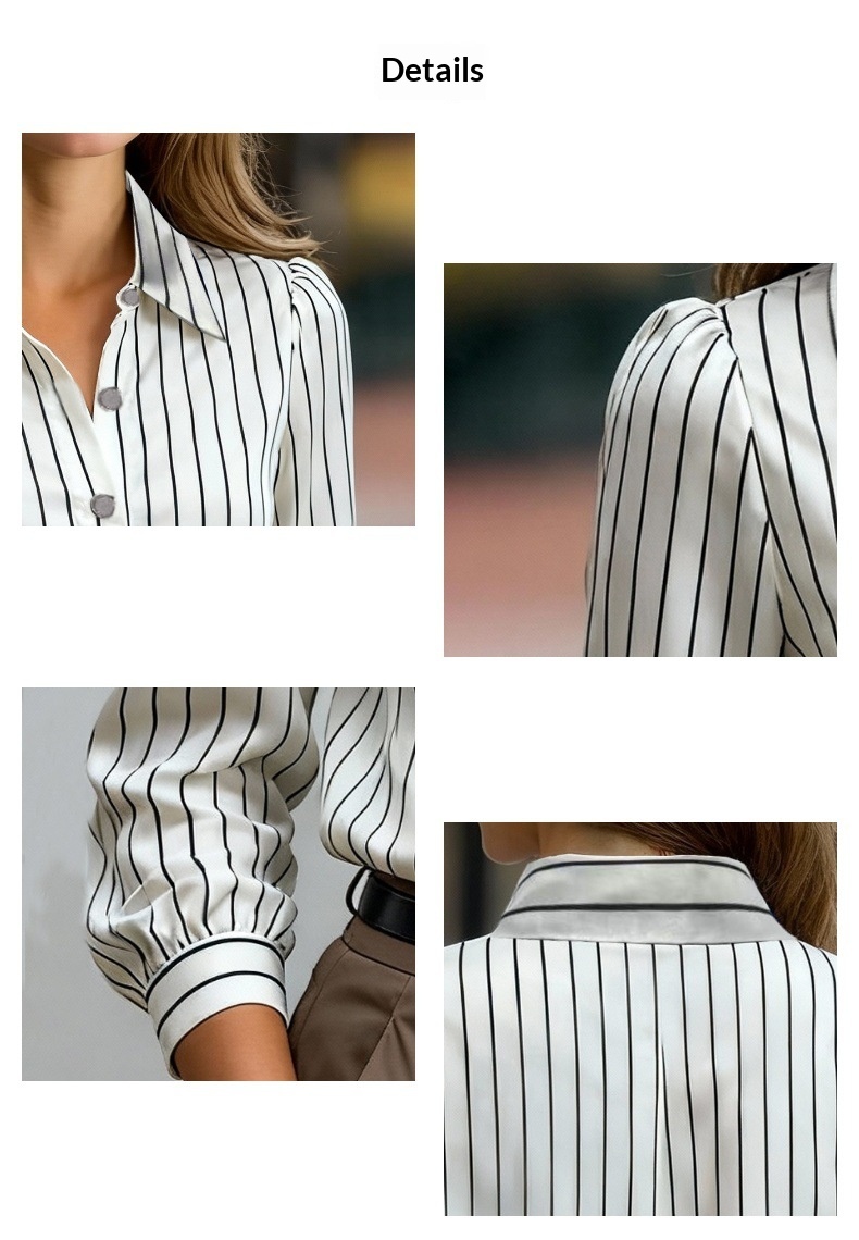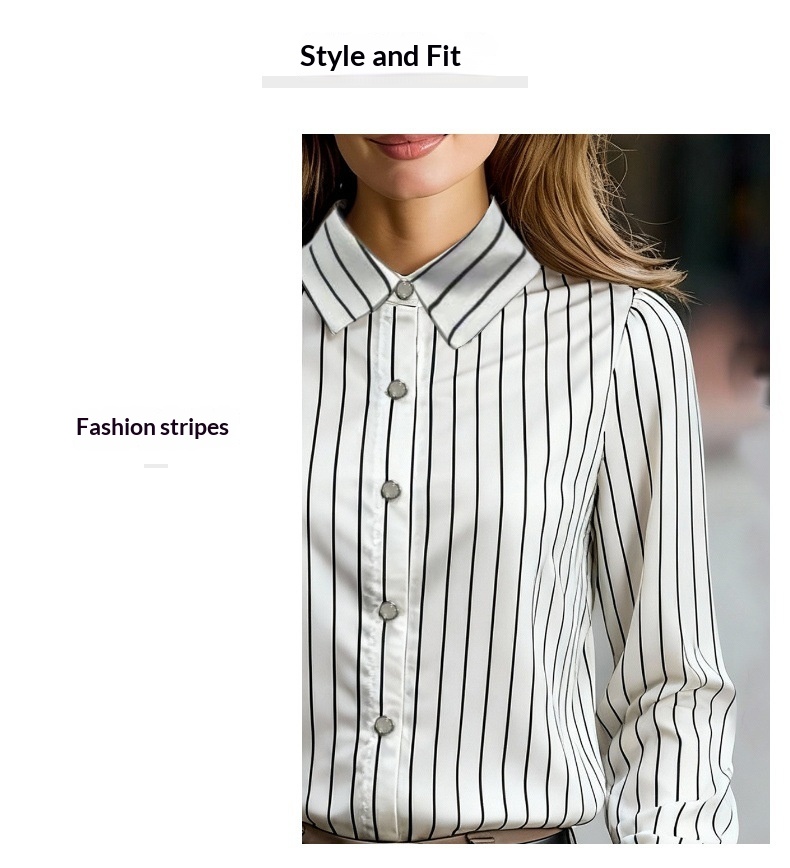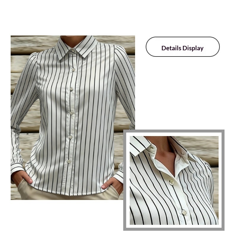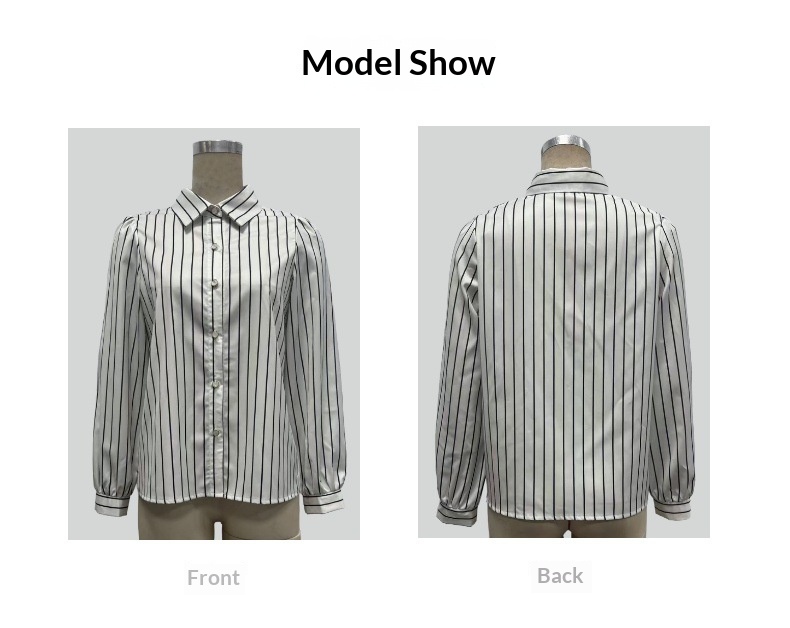 Black And White Striped Silky Satin Lapel Shirt