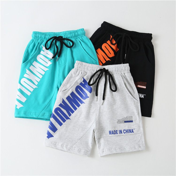 Boys’ Pants, Casual Sports Pants, Big Children’s Knitted Printed Shorts, Trendy Children’s Five-point Pants