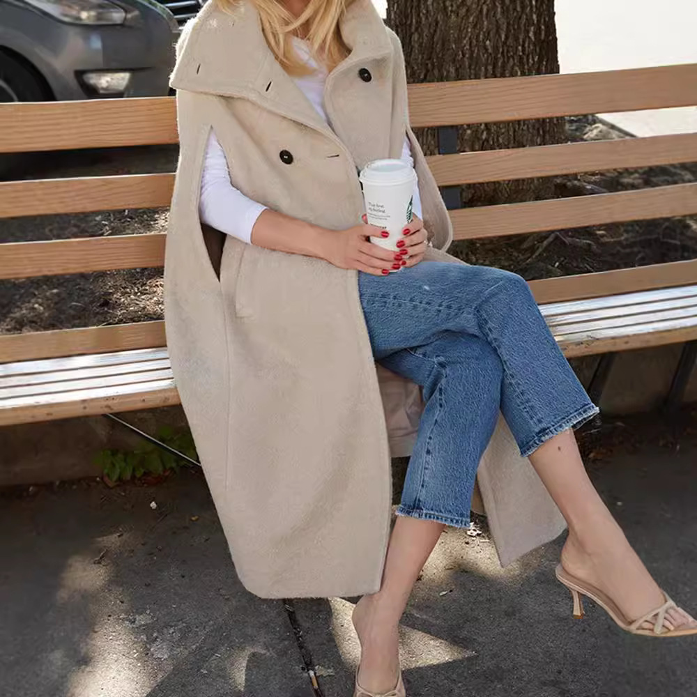 Bulky Turtleneck In Apricot Long Woolen Coat Outerwear