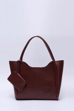 Burgundy SHK108 Faux Leather Women Hand And Shoulder Bag With Wallet And Makeup Bag