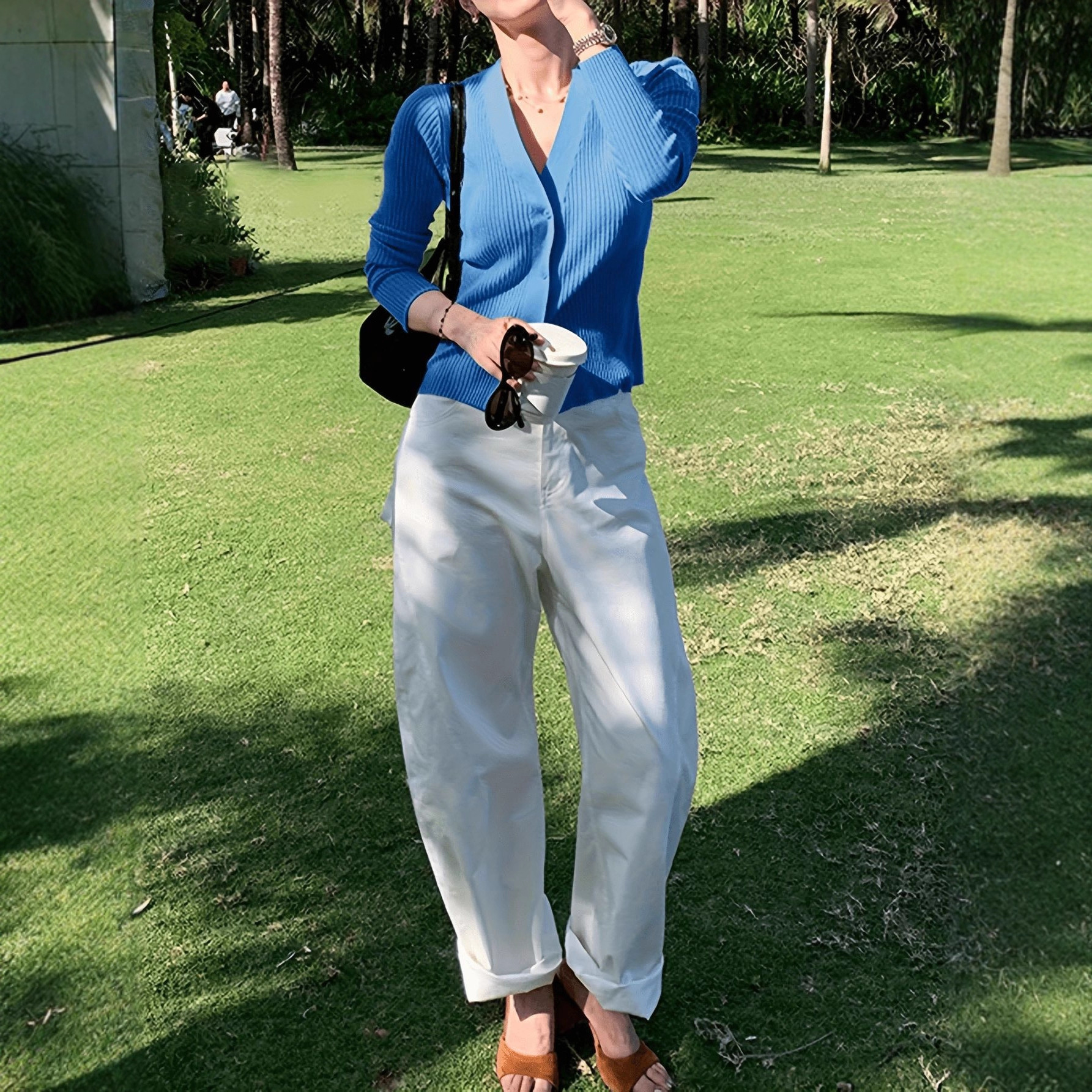 Casual, Elegant Knit Sweater With A Relaxed V-neck And Long Sleeves
