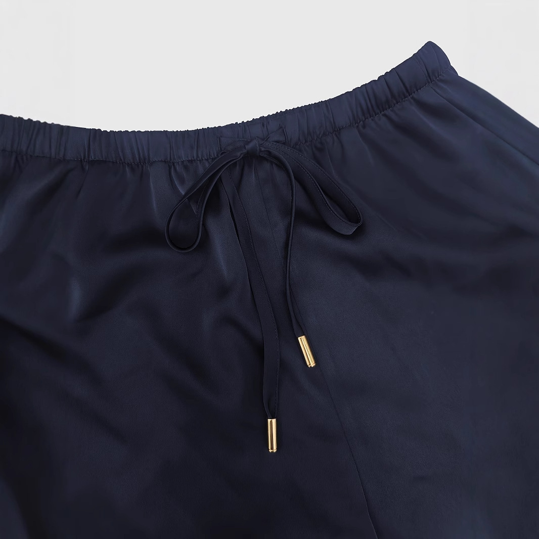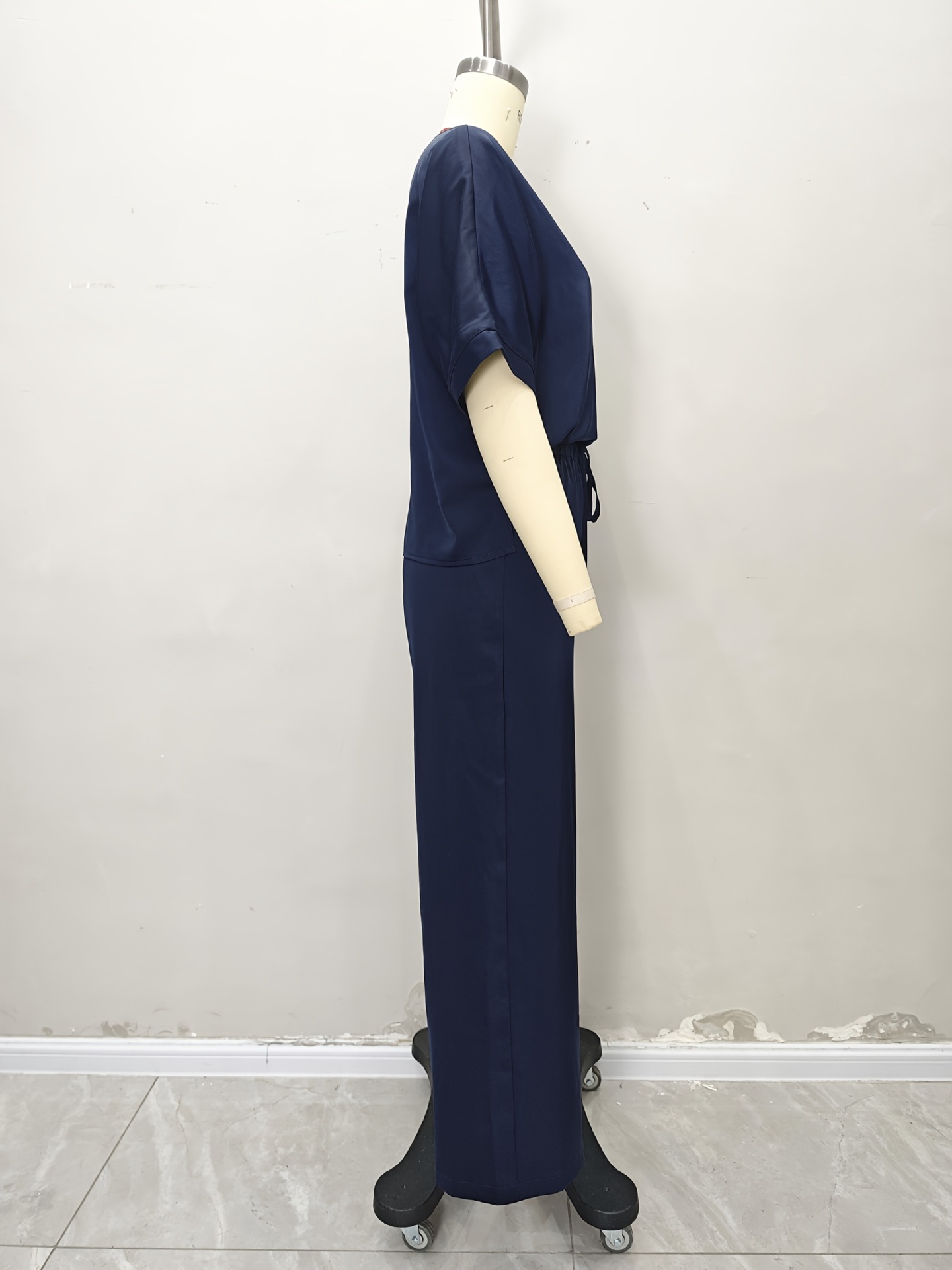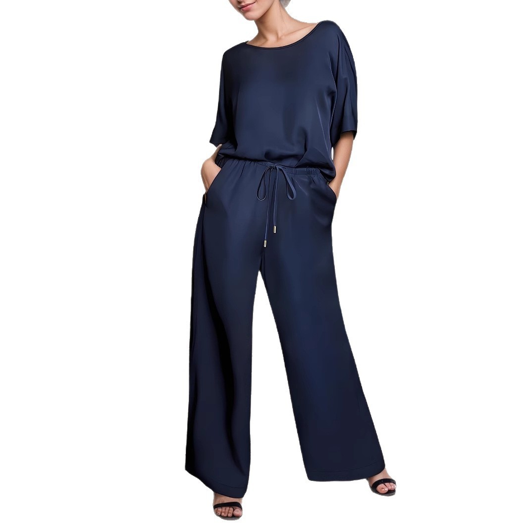 Casual Short-sleeve Top And Drawstring Wide-leg Pants Set