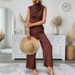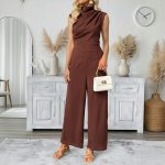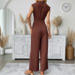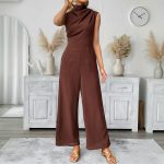 Casual Sleeveless Solid-color Boat-neck Wide-leg Jumpsuit