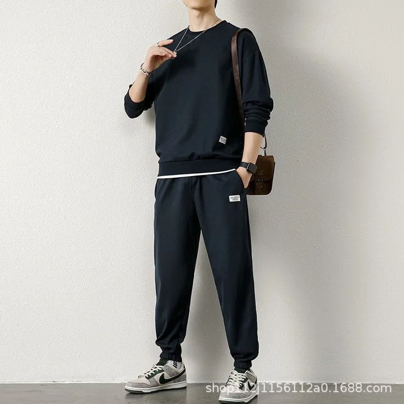 Casual Sportswear Hoodie Set for Men round Neck Spring Autumn New Style Trendy Two-Piece Set Comfortable Men’s Clothing