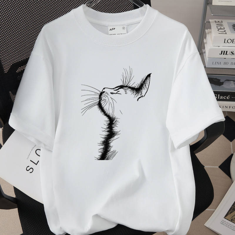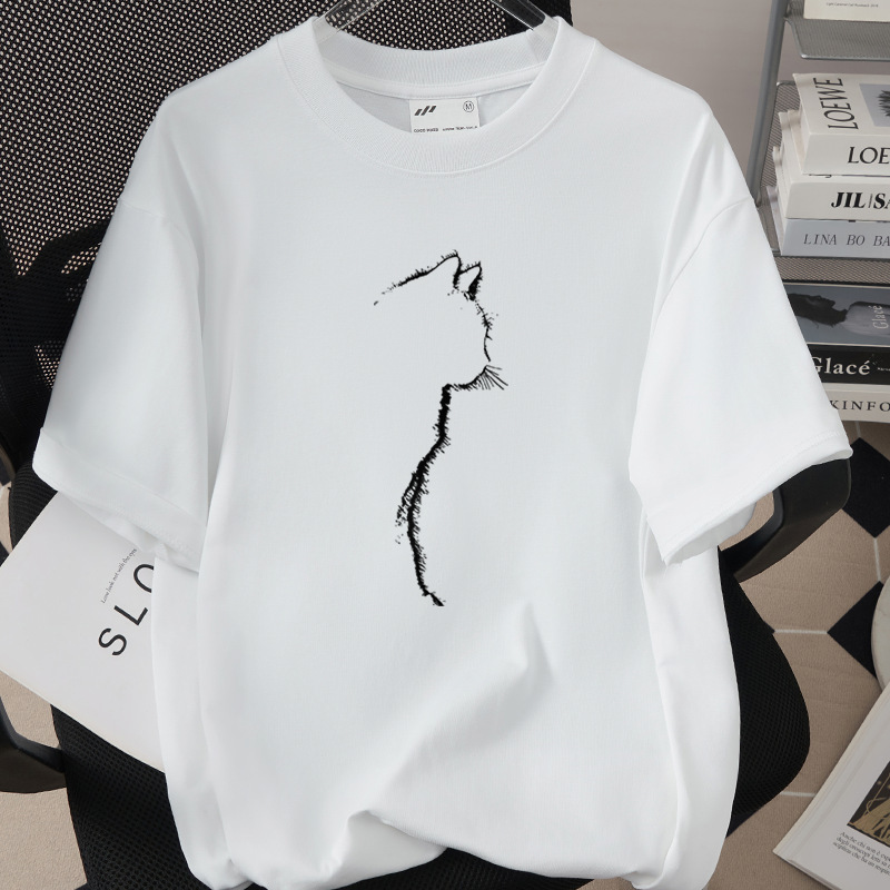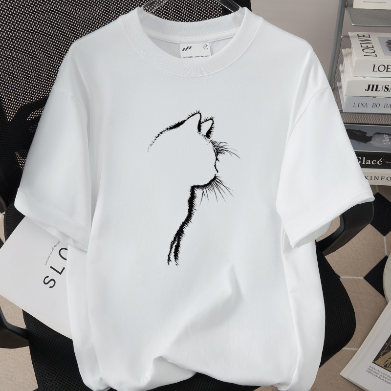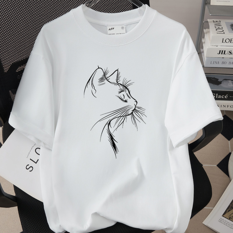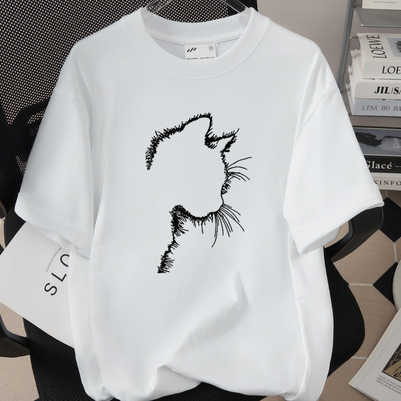 Creative And Fun Side-profile Cat Design T-shirt For Your Adorable Pet