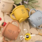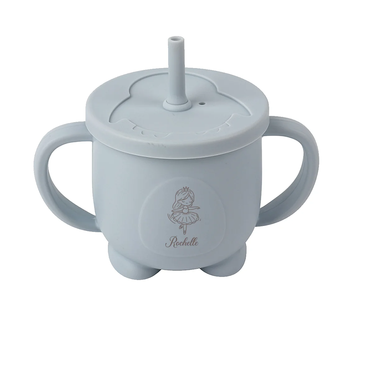 Custom Name 360° Rotating Leak-Proof Penguin Learning Cup – Silicone Baby Straw Training Cup for Newborns
