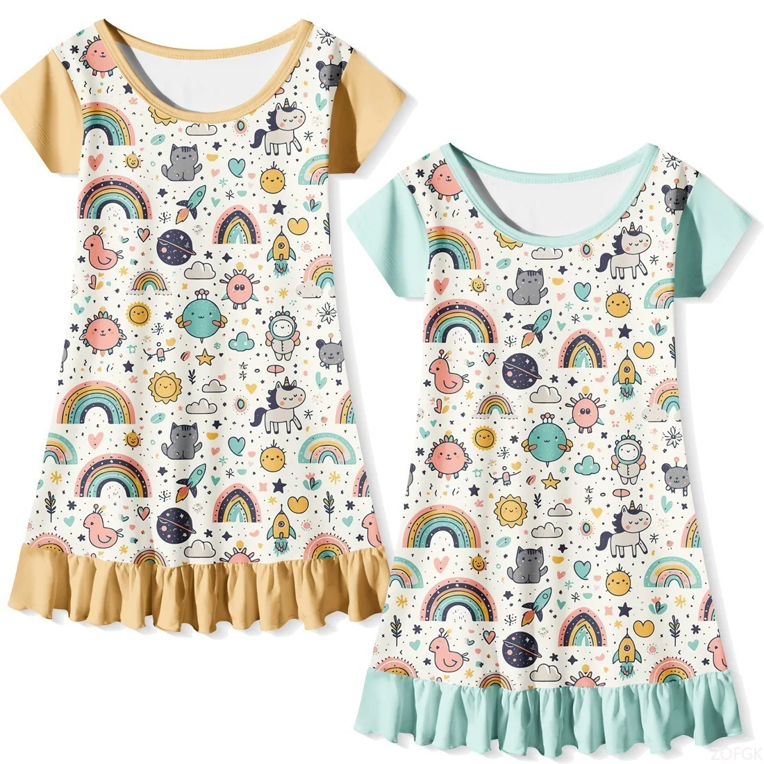 Cute Cartoon Print Casual Dress – Comfortable & Stylish Round Neck Daily Wear