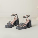 Denim-strapped Sandals With A Round Toe And Chunky Heel For Women