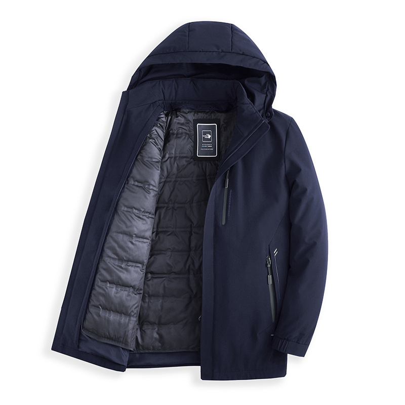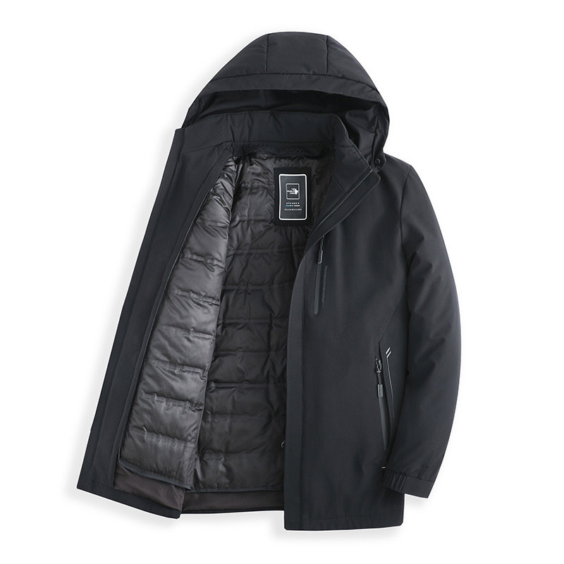 Detachable Liner Men’s Hooded Mid-length Down Jacket