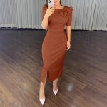 Trendy Elements: Solid color, floral, pleats, fashion, slit, puff sleeves, cinched waist