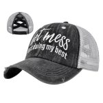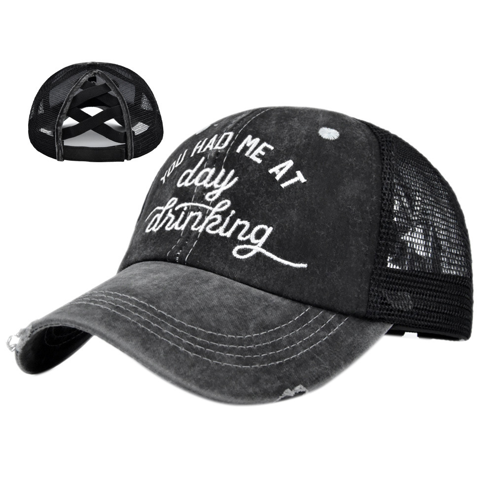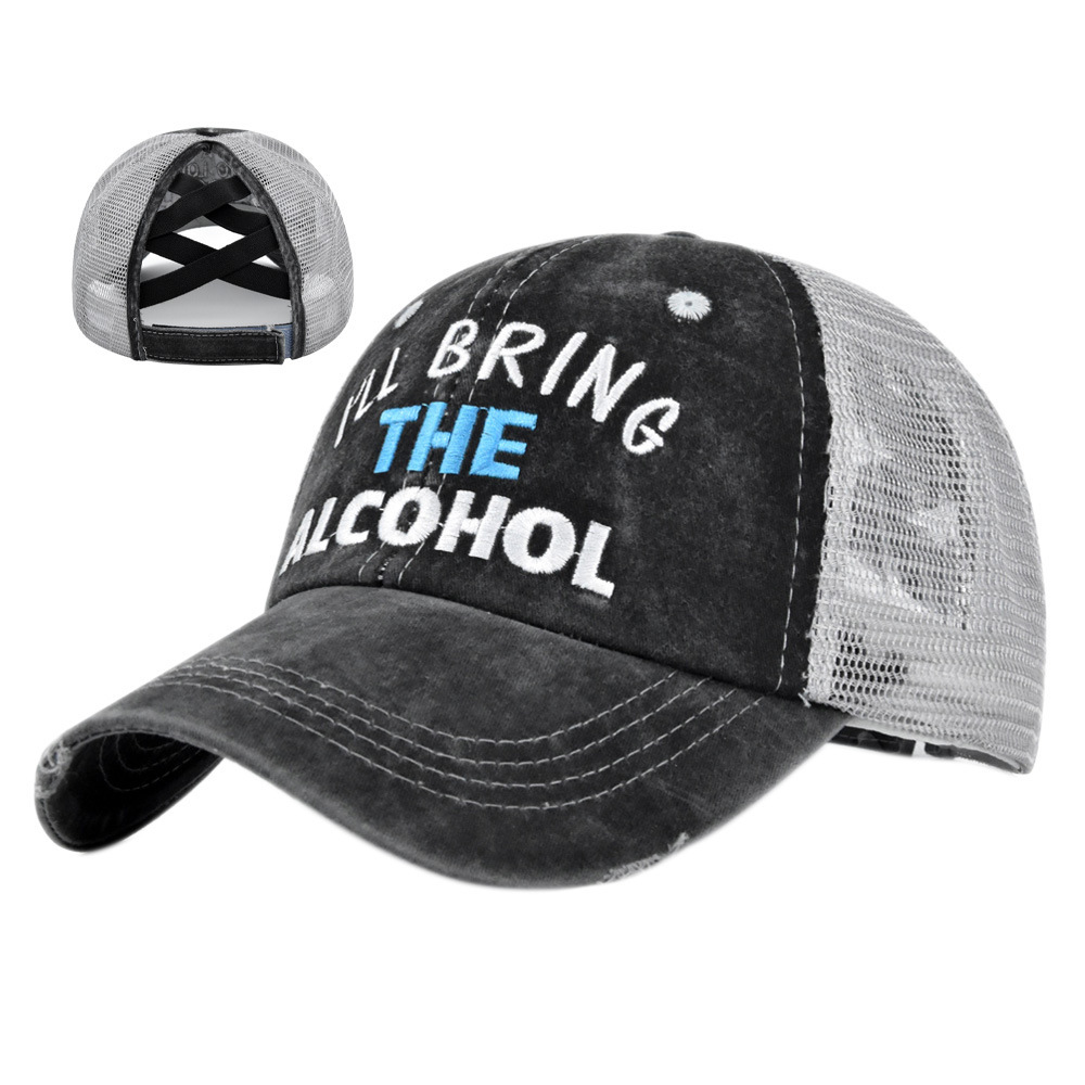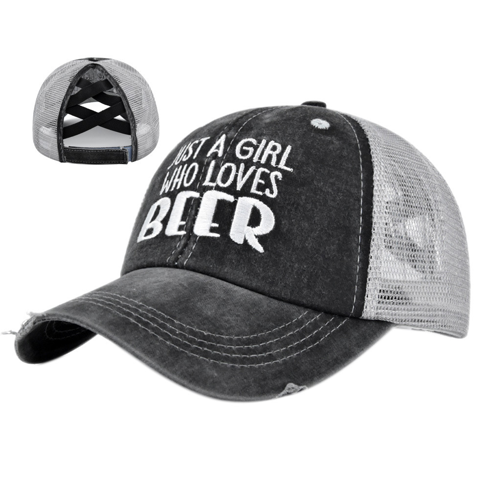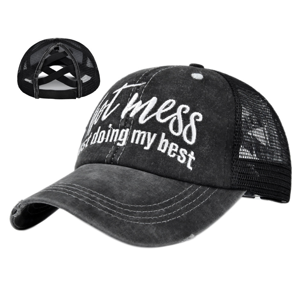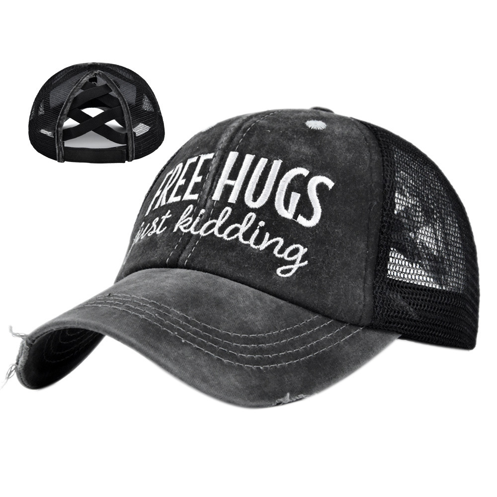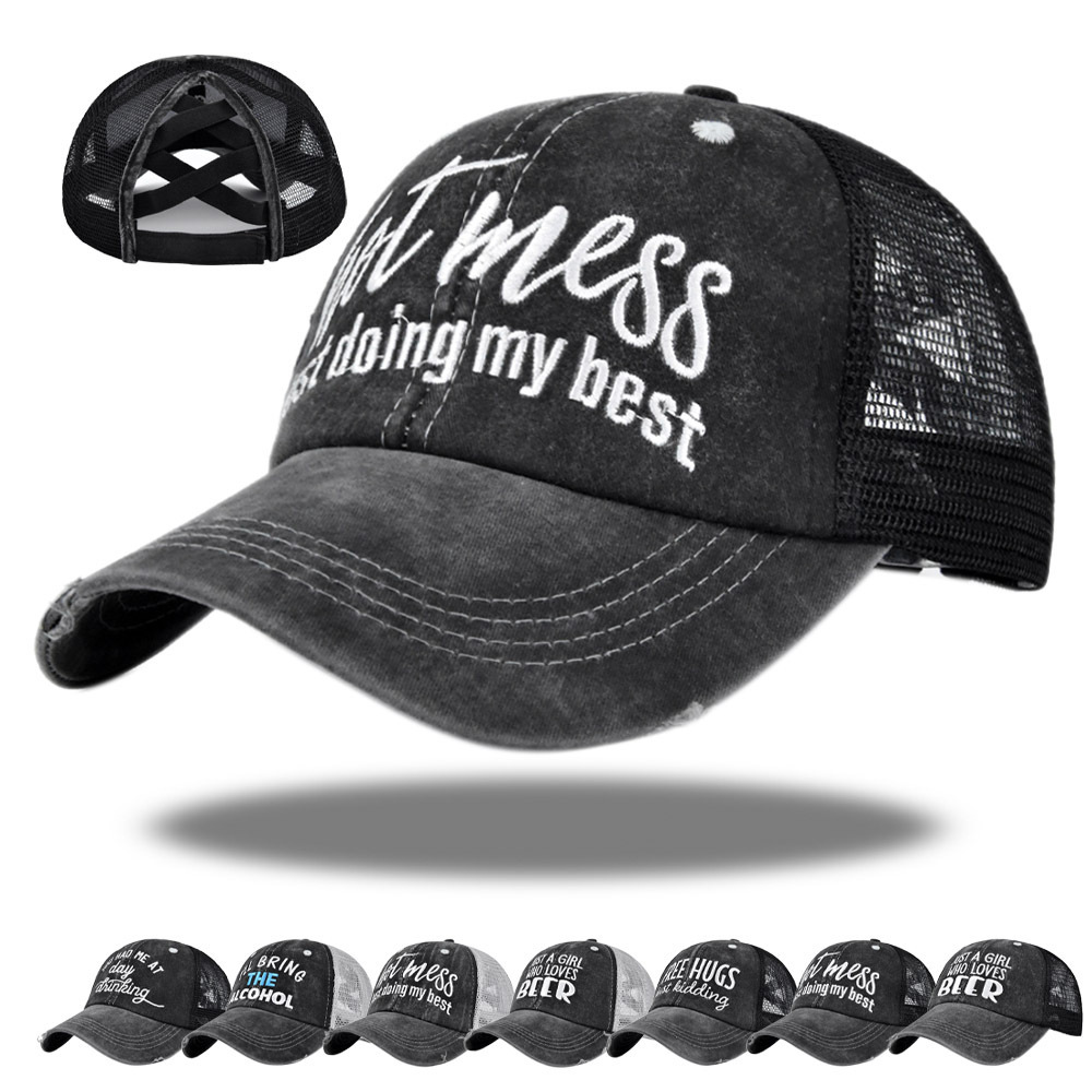 Embroidered Ponytail Mesh Cap Embroidered Peaked Cap Girl Woven Hat Embroidered Mesh Fitted Cap Cover