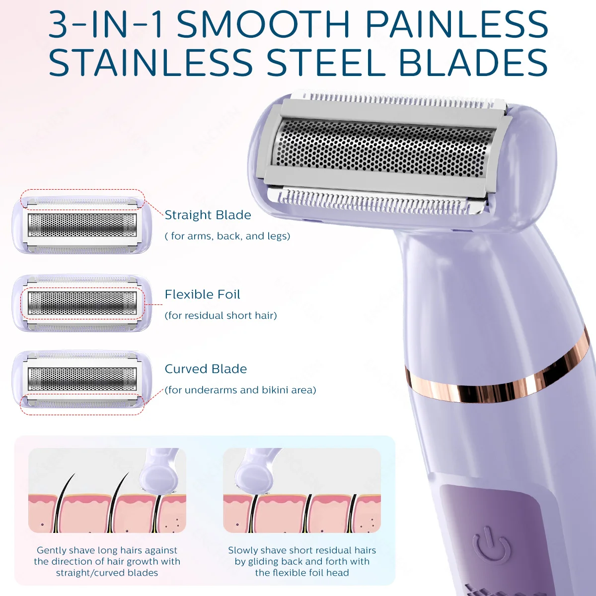 5. High-quality 3-layer flexible foil blade: It consists of three types: straight blade-flexible foil blade-curved blade, which can trim hair more smoothly and reduce irritation and scratches on the skin.