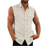 European And American Men’s Shirt Double Pocket Cotton And Linen