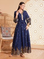 European And American Muslim Bronzing Temperament Long Sleeve Dress