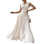 European And American-style Elegant Pleated Waist-cinching Maxi Dress