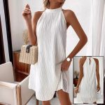 Fashion Dresses For Women Pure Color Halter Backless Dress
