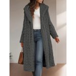 Fashion Long Solid Color Long Sleeve Hooded Wool Women’s Coat
