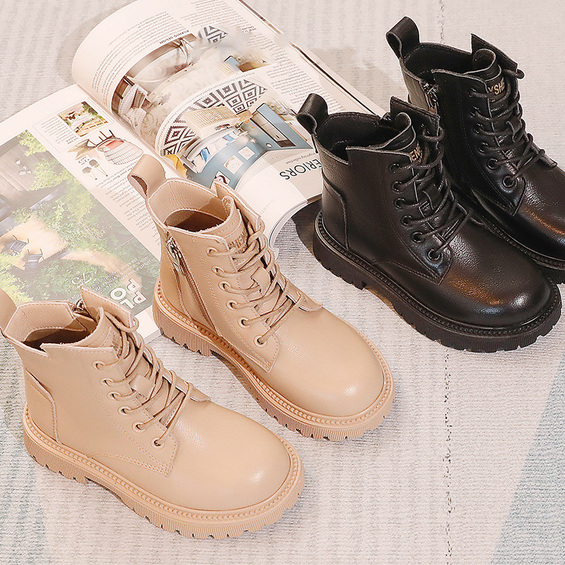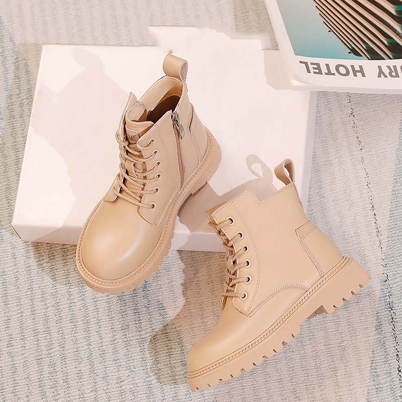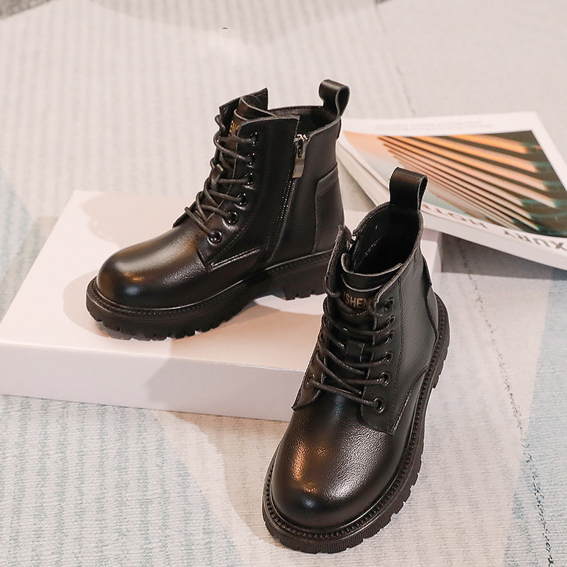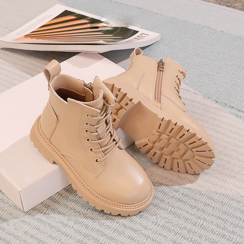 Fashion Simple Solid Color Children’s Leather Martin Boots