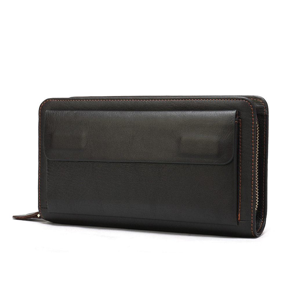 First Layer Cowhide Clutch Double Layer Zipper Wallet