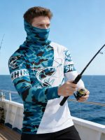 Fishing Hoodie UPF 50 Anti UV Sailing Shirt Surfing Face Cover Neck Summer Men Long Sleeve Hunting Jersey Camisa De Pesca Performance Fish Gear Beach Tops Wear Climbing Uniform Angling