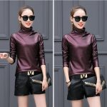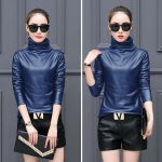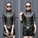 Fleece-lined Thick Leather Coat Turtleneck Bottoming Shirt For Women