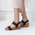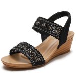Flower Hollow Out Sandals With Rhinestones Wedges Shoes Women