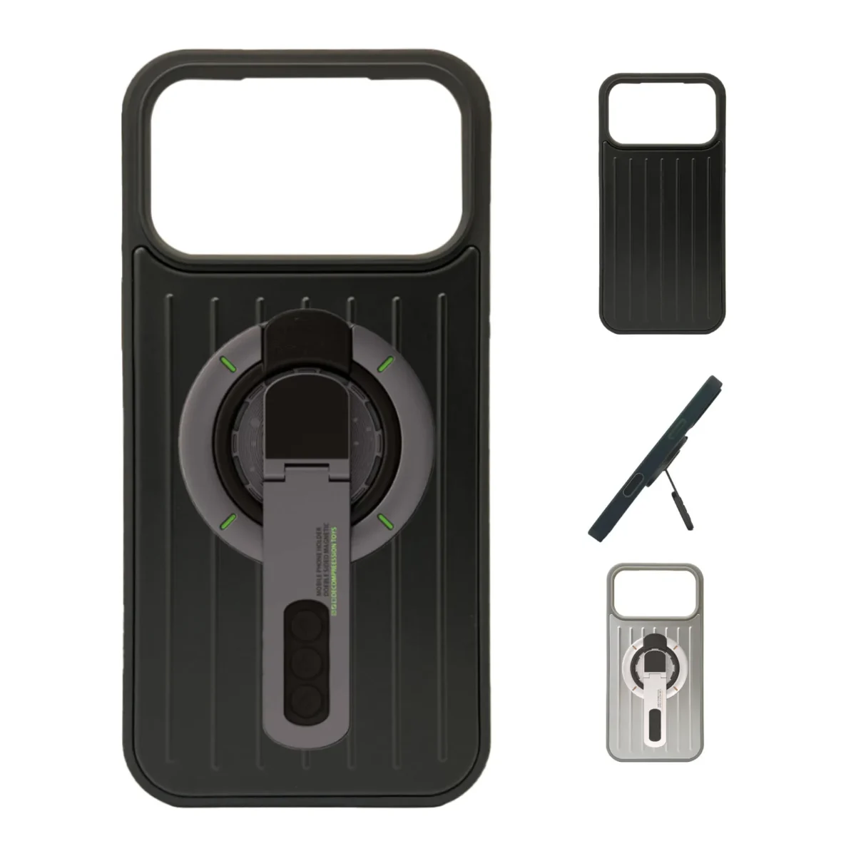 for iPhone 17 Pro Max & 17Pro Shockproof Magnetic Case Aluminum Alloy Desert Gold Minimalist Suitcase Striped Luxury Phone Cover