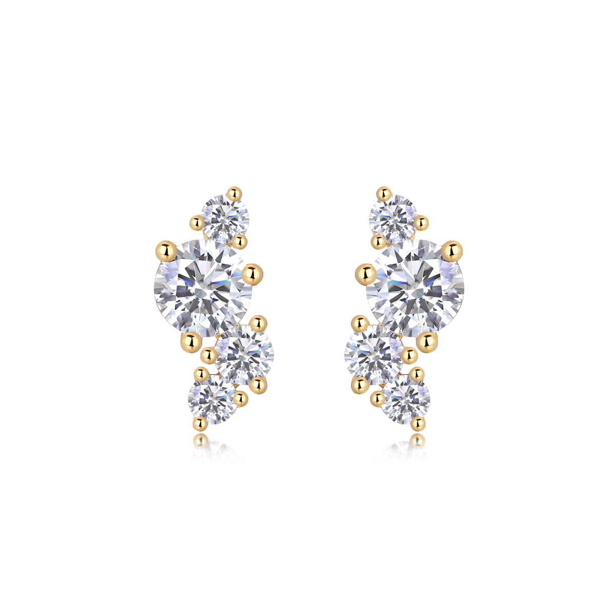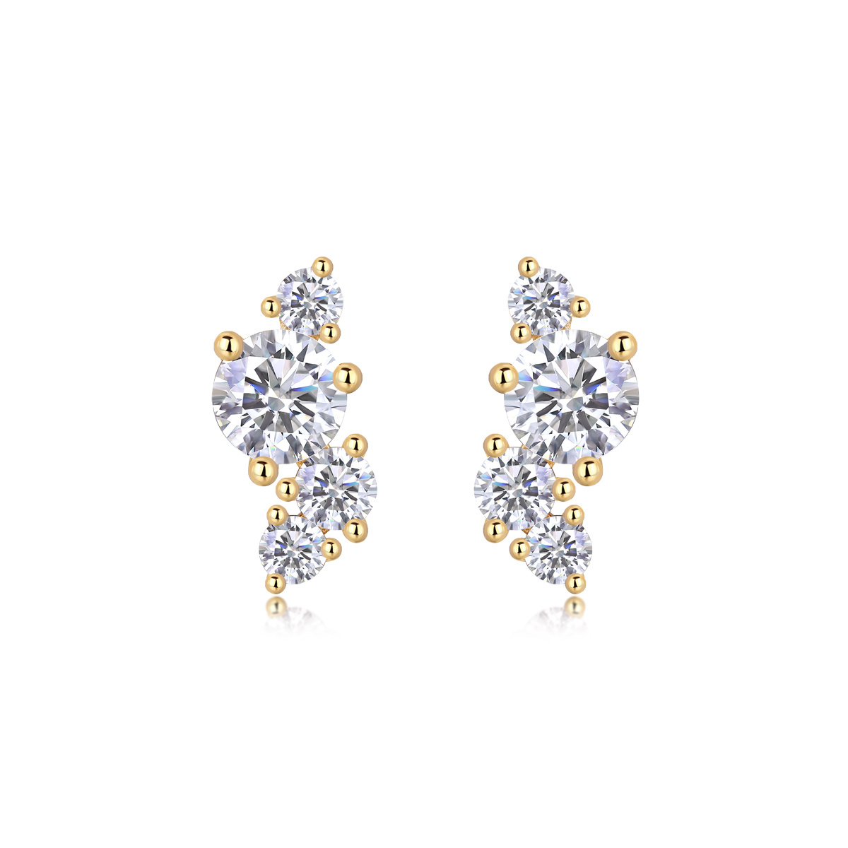 Four-diamond Light Shadow – Luxurious And Fashionable Light Luxury Jewelry Stud Earrings Set With Top-quality Moissanite, S925 Silver Electroplated Gold