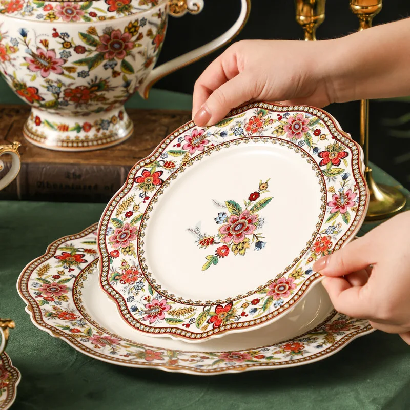 French Floral Bone China Coffee Cup and Saucer Set Home Afternoon Tea Coffee Cup Dessert Cake Plate Delicate Mug Birthday Gift