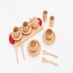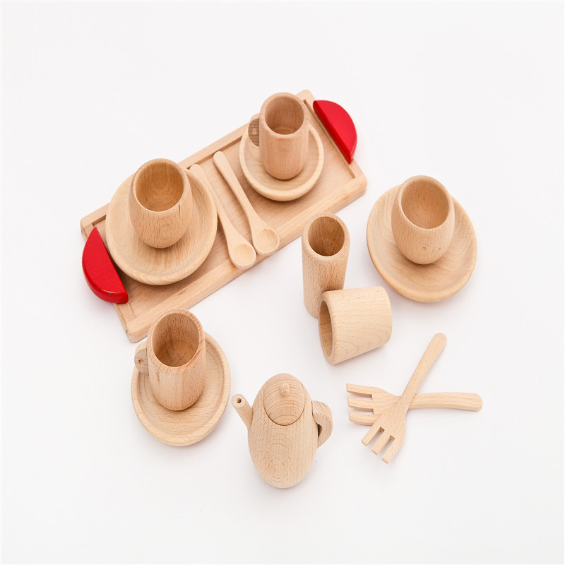 Gift Set Girl Play House Tableware Solid Wood Without Paint Simulation Kitchen Cooking Tableware Toy Beech Wood