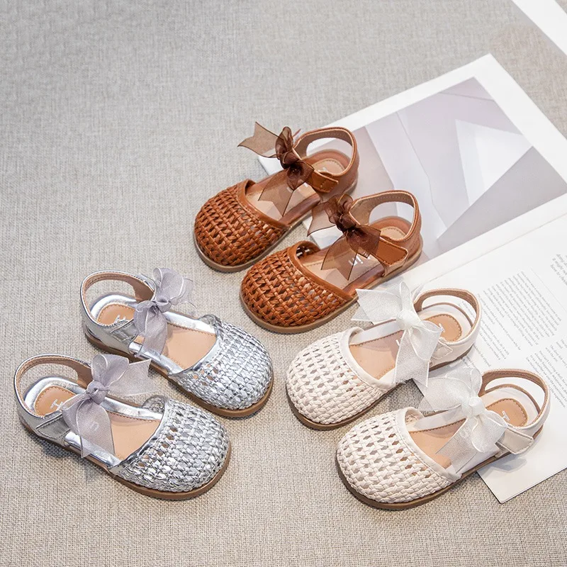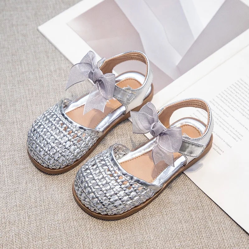 Girls’ Braided Summer Sandals – Closed-Toe Princess Shoes with Soft Sole & Butterfly Design