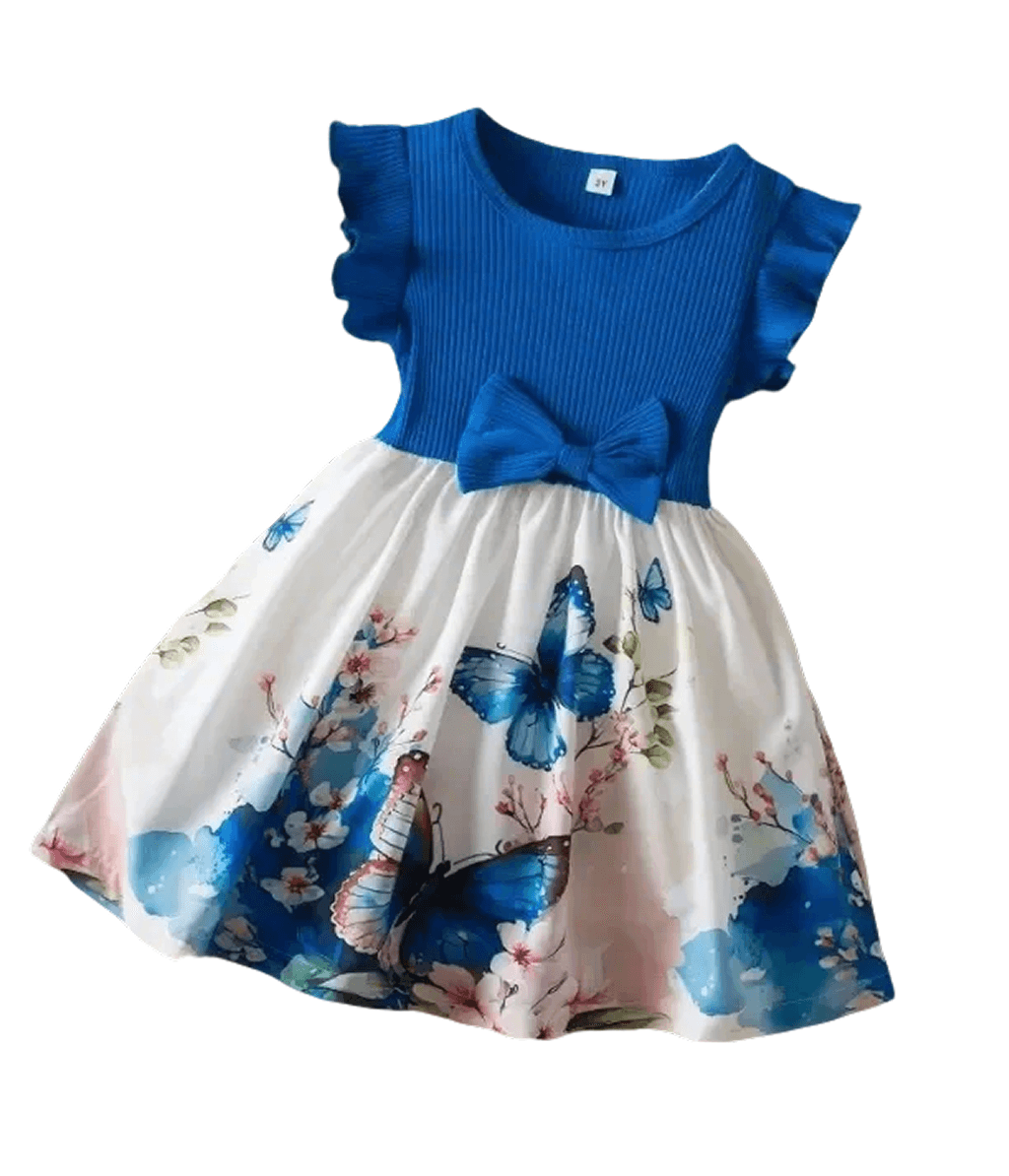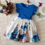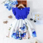 Girls’ Butterfly Print Summer Dress – Flying Sleeve Party Outfit (Ages 3–8)