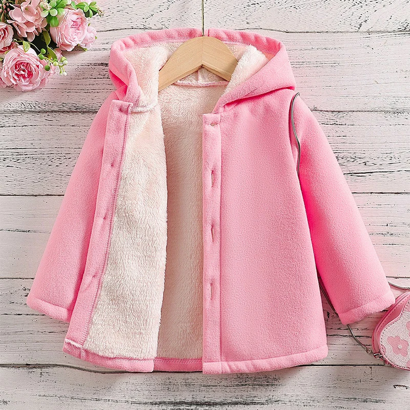 Girls’ Fleece Hooded Cardigan – Warm Autumn/Winter Jacket for Kids