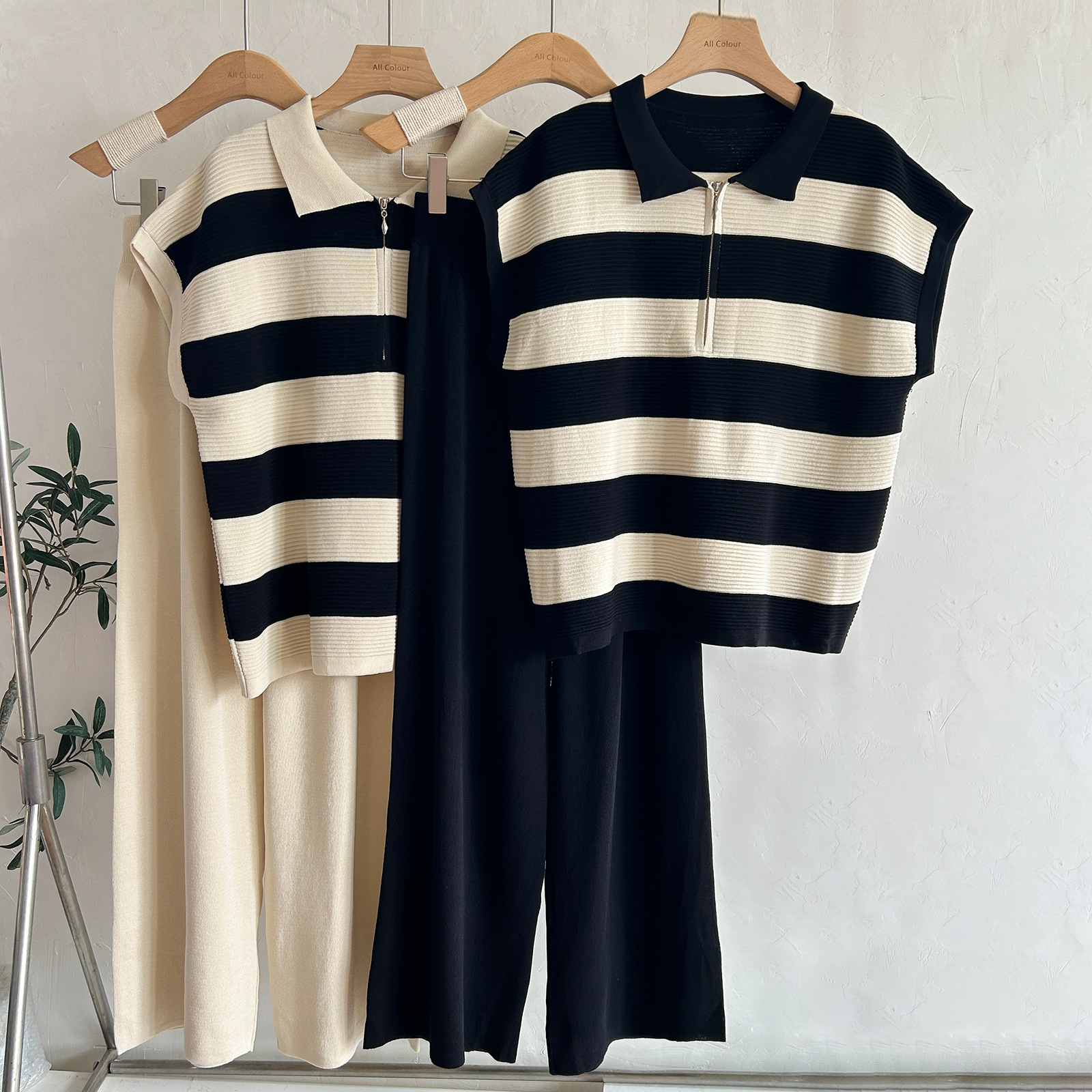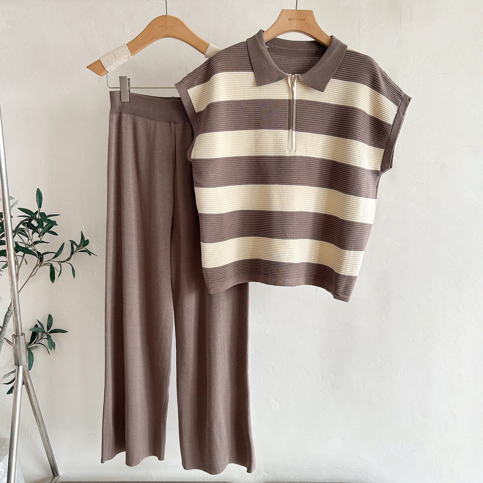 Half-Chain-Link Pattern Knitted Sleeveless Top And Wide-Leg Pants Set