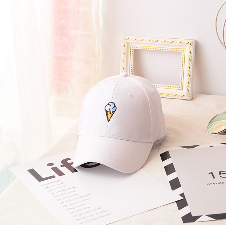 Product Category Baseball Cap Applicable gender Neutral / Men and women Material Cotton Style Korean version Popular elements embroidery pattern cartoon suitable for seasons winter, spring, summer, autumn Whether foreign trade is applicable to gift occasions Opening ceremony, birthday, awards commemoration, wedding, advertising promotion, business gifts, anniversary celebrations, public relations planning, trade fairs, festivals, employee benefits, housewarming, printing LOGO can Cap Style Dome Color Ice Cream – Black, Ice Cream – White, Ice Cream – Pink Size Adjustable Applicable age